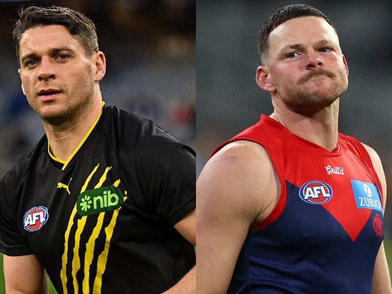 Dion Prestia and Steven May are charged by police over their alleged involvement in a brawl in a Victorian coastal town last December.
