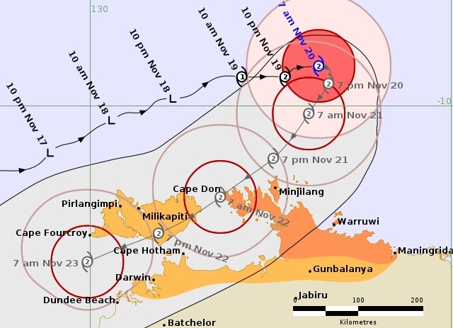 Cyclone watch extends to Darwin as Fina set to begin tracking south-west